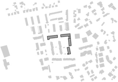 Die an den Straßen geplanten Häuser nehmen Maßstab und Dachform aus ihrer Umgebung auf. Im Blockinnern werden dreigeschossige Flachdachhäuser vorgeschlagen, die in der Grundrissgestaltung flexibler sind und damit ein besseres Reagieren auf die beengten Grundstücksverhältnisse zulassen.
