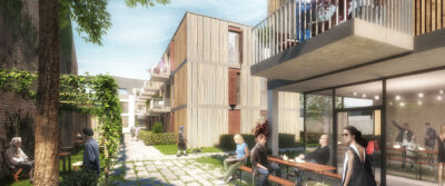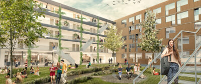 Der neue Wohnraum soll überwiegend auf bereits versiegelter Fläche, in Form von Aufstockungen, sowie teilweise durch Nachverdichtung entstehen. Die Architektur kombiniert Effizienz, Komfort und Nachhaltigkeit, um den Bedürfnissen moderner Familien und Bewohner gerecht zu werden. Dafür werden die Bestandgebäude energetisch saniert und um Aufstockungen in Holz-Raummodul-Bauweise ergänzt.