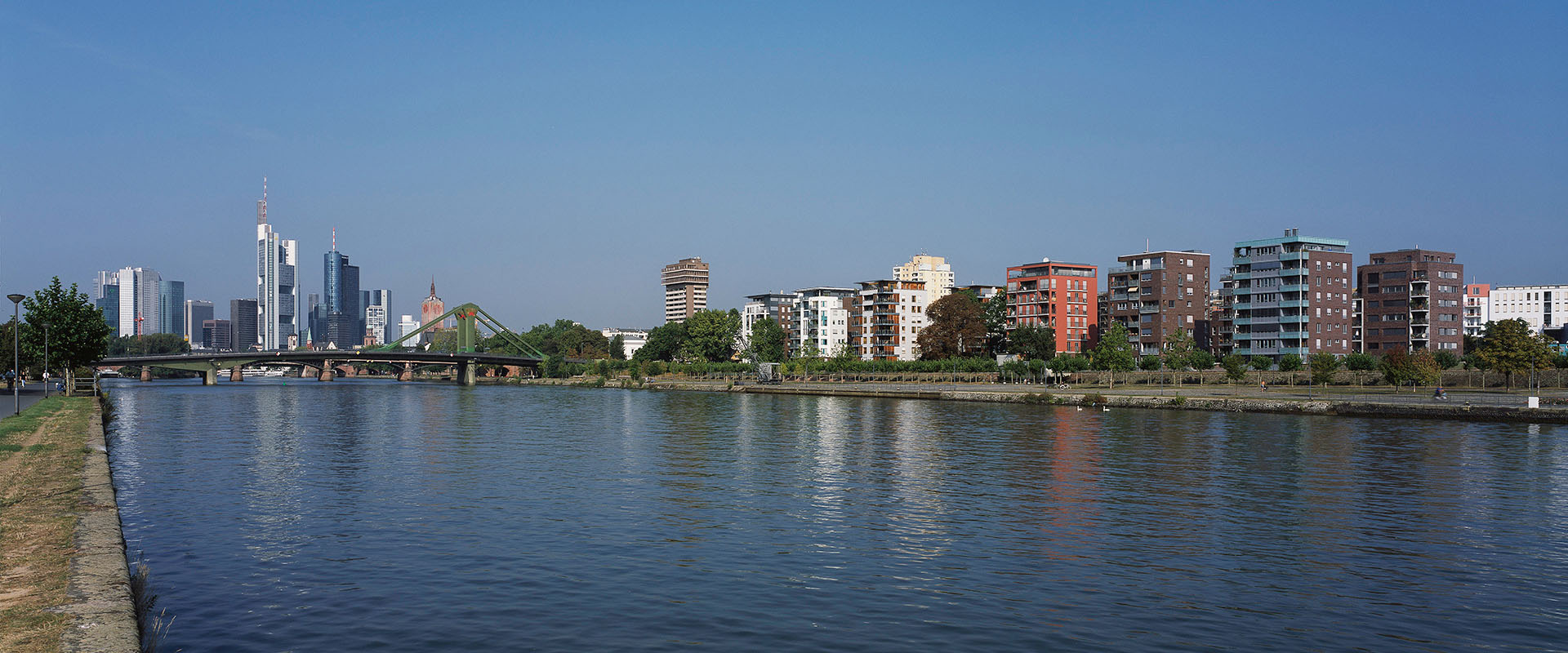 Direkt am Mainufer, mit der Hauptausrichtung nach Süden, wurde ein Wohnhausensemble aus vier Solitären mit Tiefgarage in fußläufiger Nähe zur Innenstadt realisiert. Das zur alten Großmarkthalle am nächsten liegende achtgeschossige Haus nimmt Motive des benachbarten Gebäudekomplexes auf, trägt aber mit seinen großen Loggien, Balkonen und den nach Süden zum Main hin gelegenen Dachterrassen der Wohnnutzung Rechnung. Die 14 unterschiedlich großen Wohnungen, davon auch eine Maisonette, ermöglichen eine gute Mischung der Bewohner.